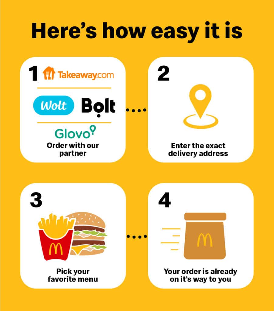 There's no way hunger will catch you off guard when it's so easy to order with McDelivery™. A few steps with Takeaway, Glovo, Wolt or Bolt Foods and hot food is in your cozy home. Or in the office? Or wherever you are in Sofia, Plovdiv, Varna, Burgas, Stara Zagora, Veliko Tarnovo and Pleven.