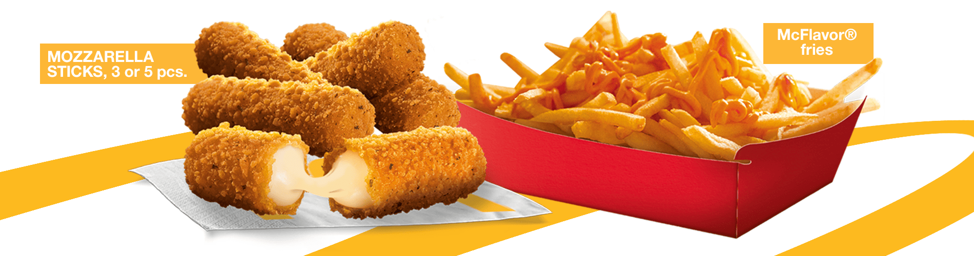And to make it even tastier, we created the captivating Mozzarella Sticks. Juicy mozzarella sticks perfect for dipping in ketchup, barbeque sauce or just on their own. Available in 3 or 5 pcs, so you can share them with a friend or enjoy them all on your own.