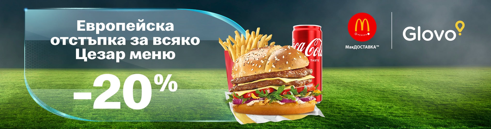 Вместо да чакаш пряк свободен удар, се отдай на момента и си поръчай вкусно хапване на оферта от Макдоналдс. Само с МакДОСТАВКА™ и Glovo всяко Цезар меню е с 20% отстъпка. Моментът е решаващ. Играеш ли?