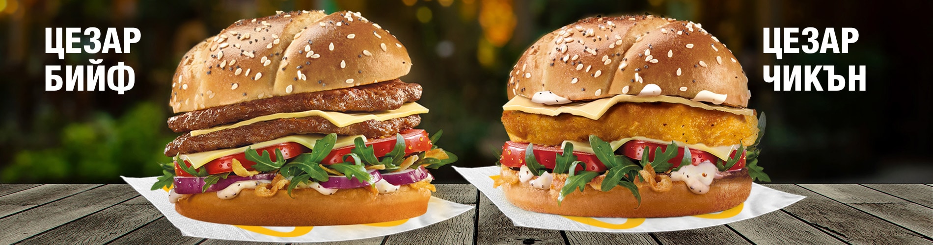 Бъдете винаги в центъра на купона това лято. Каним ви да празнуваме новите Цезар Бийф и Цезар Чикън – защото всеки има нужда от истински вкусни бургери. Ето каква фиеста от вкусове ви очаква: