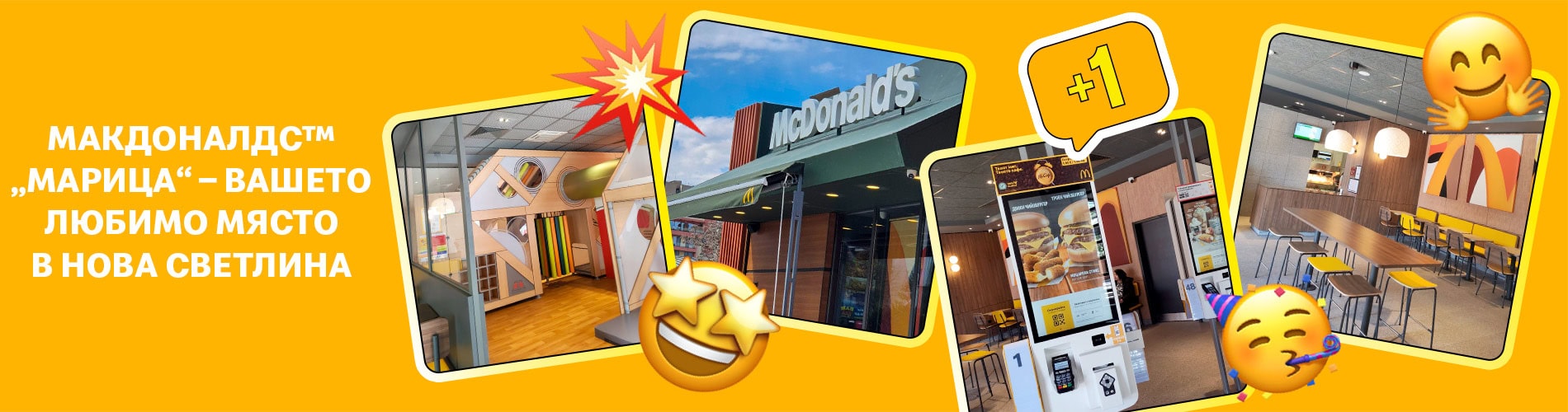 Ресторант „Марица“ се завръща – обновен, по-модерен и по-уютен. Повече от 30 години Макдоналдс™ в България създава моменти на радост, а днес продължаваме тази традиция с ново вдъхновение.