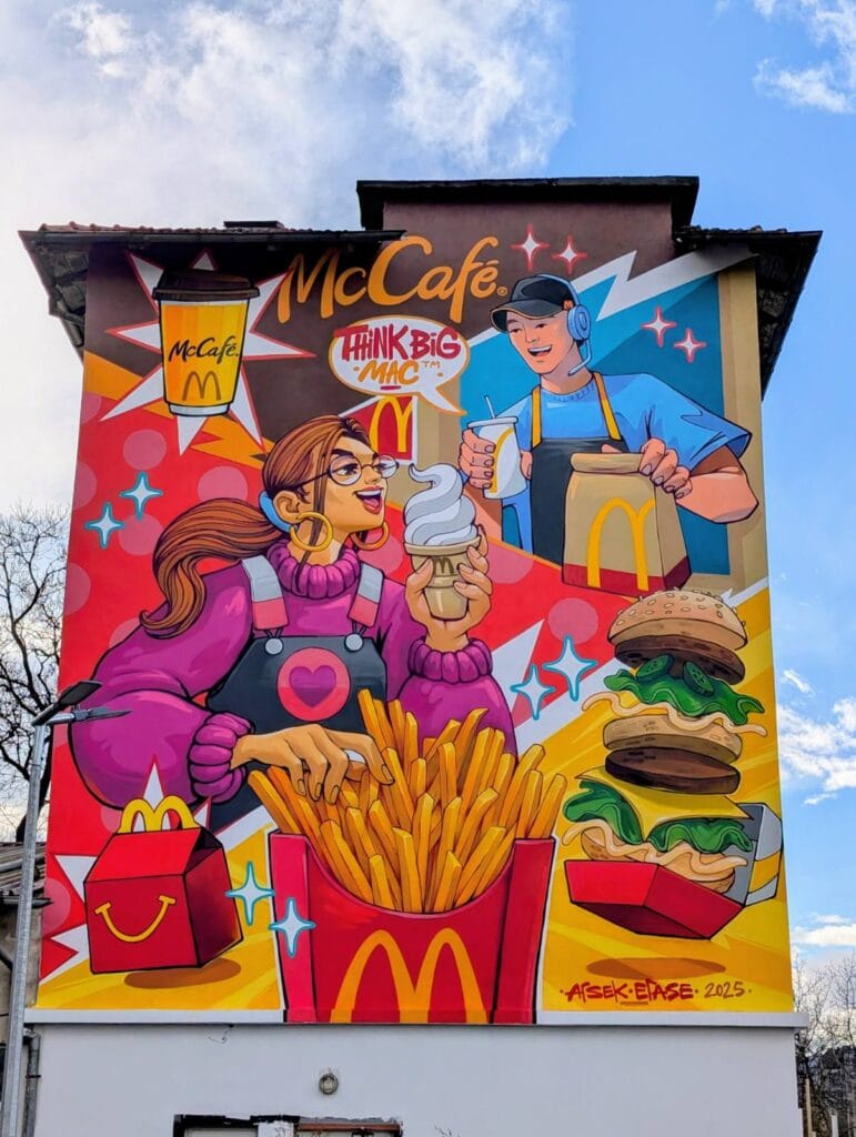 Финалният щрих? Отвън те посреща пресен графит, който ще те вкара в Макдоналдс™ настроение още с първата крачка.