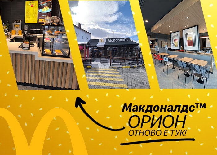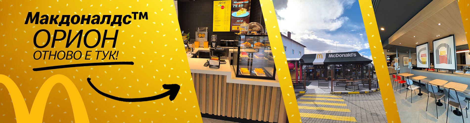 Ресторантът е напълно обновен — с нов интериор, свежа атмосфера и същите любими вкусове, които те чакат, за да ти донесат настроение и вкусно изживяване. А за още повече удоволствие вече имаме и чисто нова McCafé™ зона с апетитни десерти и разнообразие от топли и студени кафе напитки.